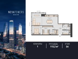 Площадь - 113,2 м², 54 этаж, шикарный вид!