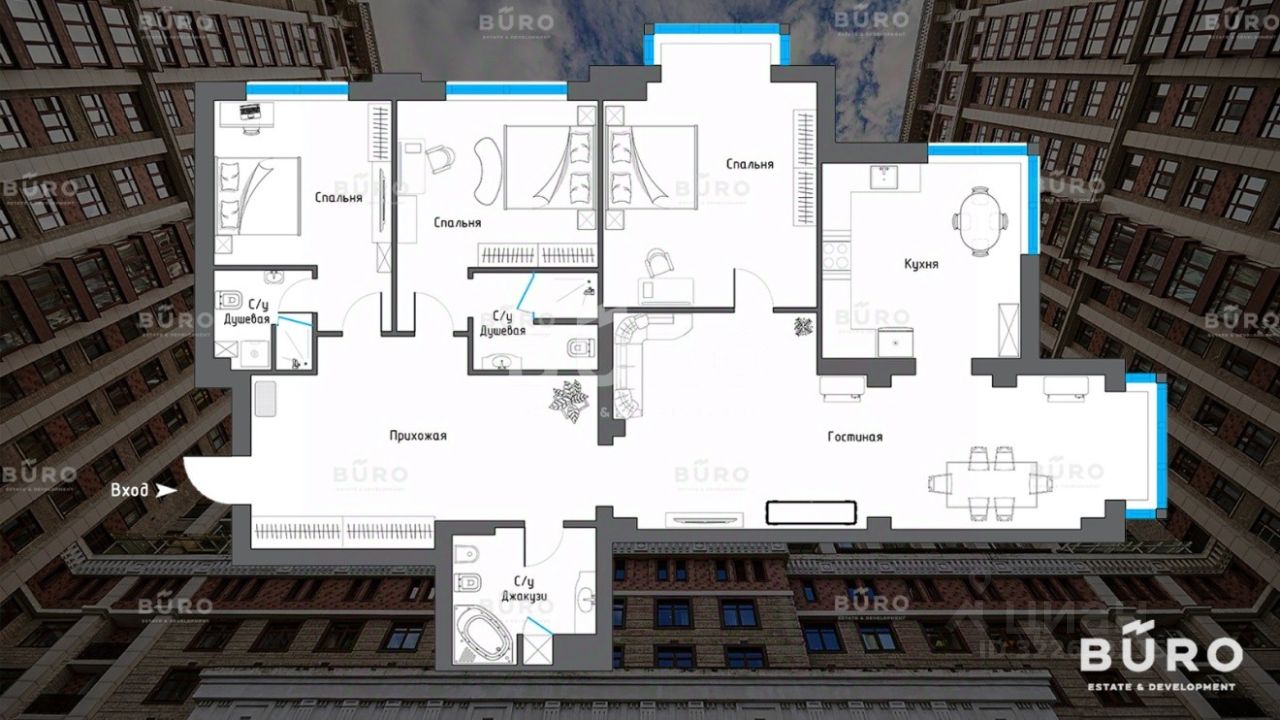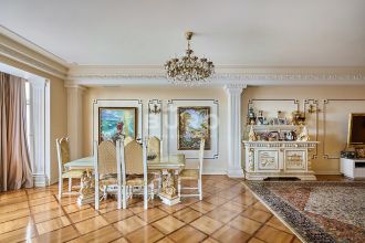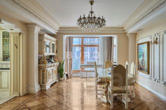 Продается просторная квартира с открытым панорамным видом в ЖК премиум-класса "Триумф Палас" в Хорошевском районе. Окна квартиры выходят на юго-западную сторону двора, что обеспечивает хорошее естественное освещение на протяжении всего дня. Высокие потолки 3,2 метра обеспечивают максимум пространства и простора.