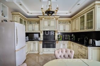 Выполнен свежий дизайнерский ремонт с применением дорогостоящих и высококачественных материалов. Каждая из комнат и кухня тщательно продуманы до мелочей, образуя элегантную обстановку. В качестве напольного покрытия использована паркетная доска. Квартира оснащена всей необходимой мебелью и техникой для комфортного проживания. Имеется встроенная кухонная техника Miele. На этаже располагается общая благоустроенная лоджия на 4 квартиры и индивидуальная кладовая. Сама квартира находится в малоэтажной секции из 22 этажей.