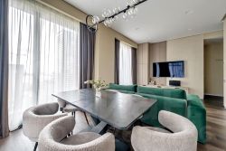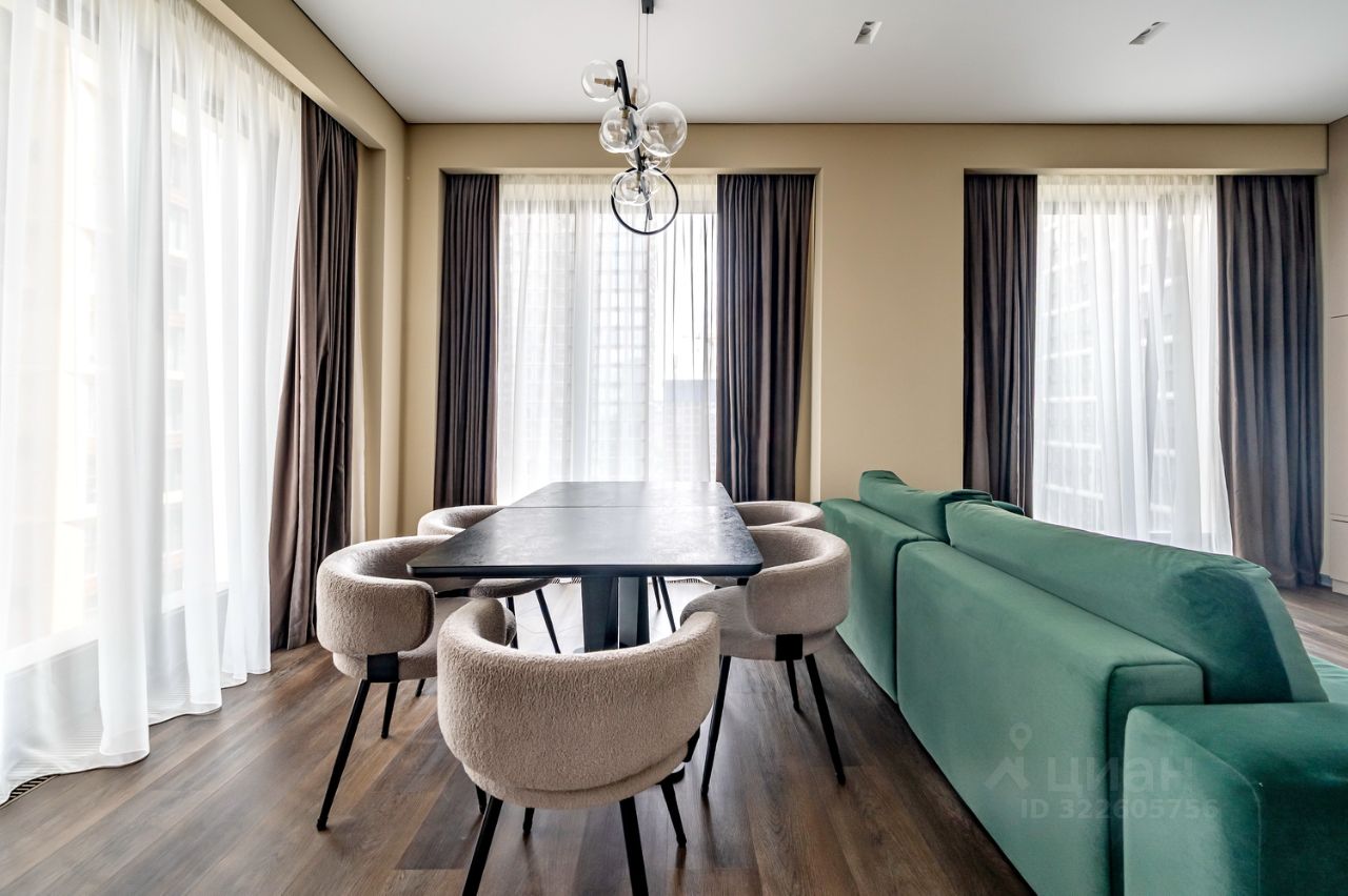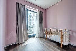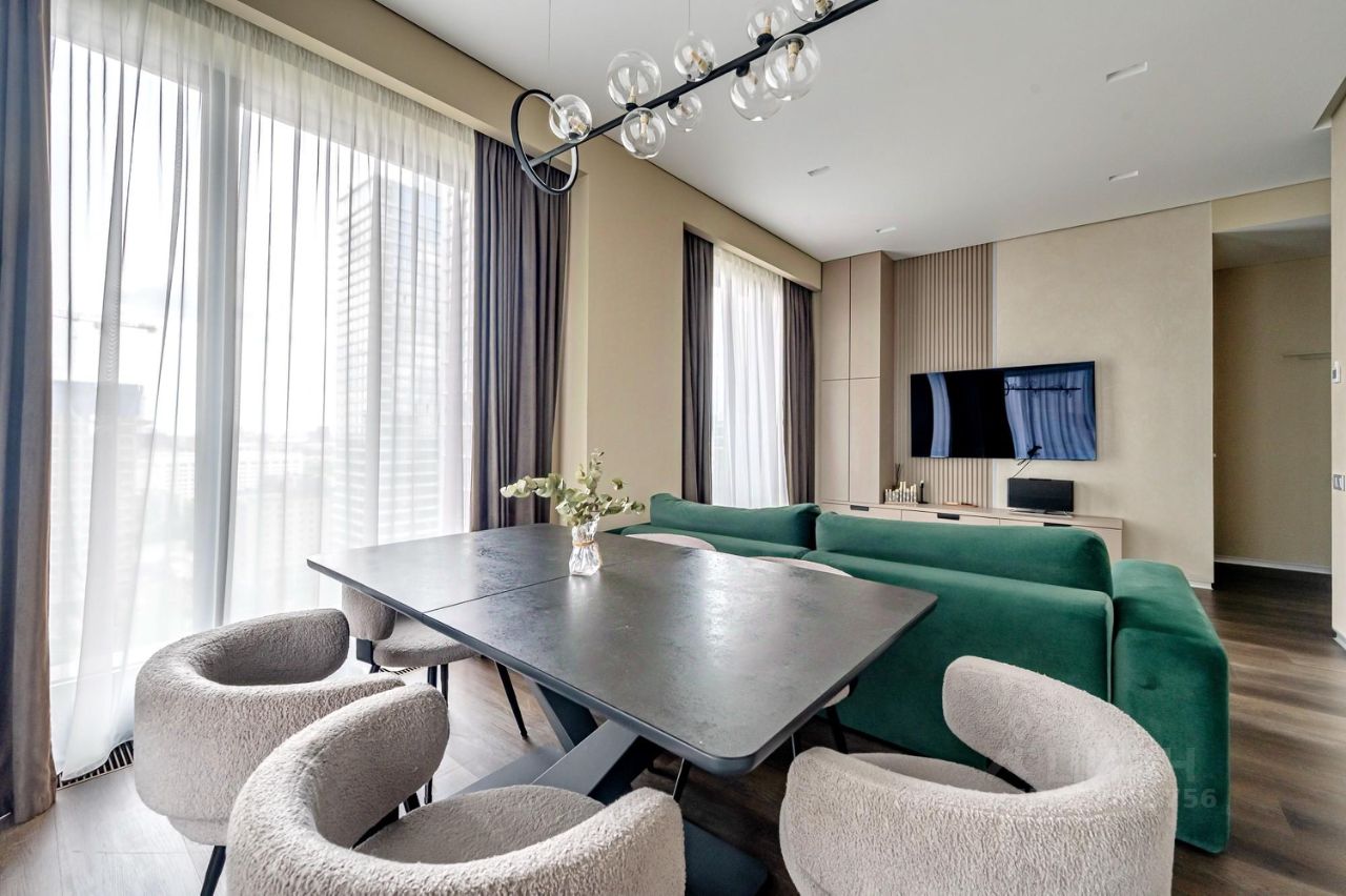 Площадь квартиры — 89 м², потолки 3,2 м. Идеальная высота — 14 этаж из 41: отличный обзор города, отсутствие шума улицы и живописные виды.