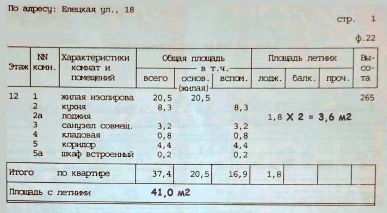 Общая площадь квартиры 41 м2 указана с учётом полного размера лоджии, площадь по ЕГРН - 37,4 м2.
