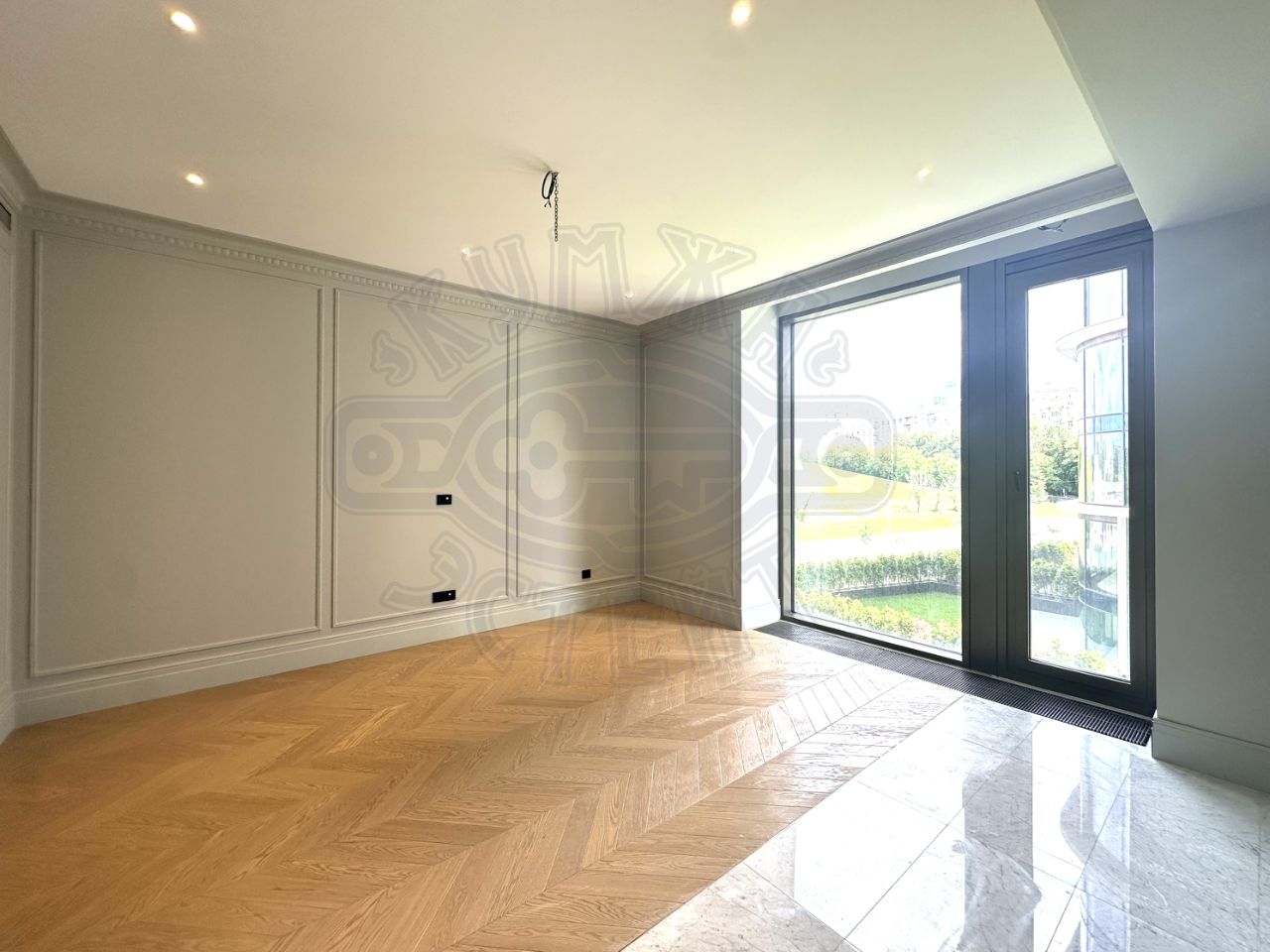 Панорамные окна, высокие потолки 3.2 м. Отделка в стиле неоклассика.