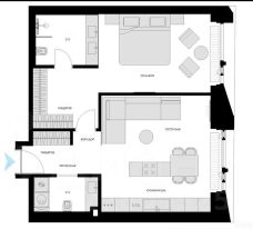 - кухня - гостиная, столовая зона и зона для отдыха 32.5 м2,
