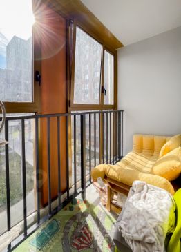 Жилая площадь составляет 55.7 кв. м, кухня — 10 кв. м. Квартира находится на 4 этаже 18-этажного монолитного дома. Высота потолков — 2.7 метра, что придает пространству дополнительный объем. Панорамные Окна выходят во двор, поэтому в квартире всегда тихо и уютно.