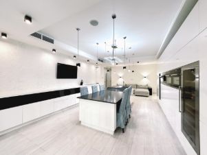 Квартира — воплощение современного стиля и комфорта, выполнена с использованием премиальных материалов и техники высокого класса.