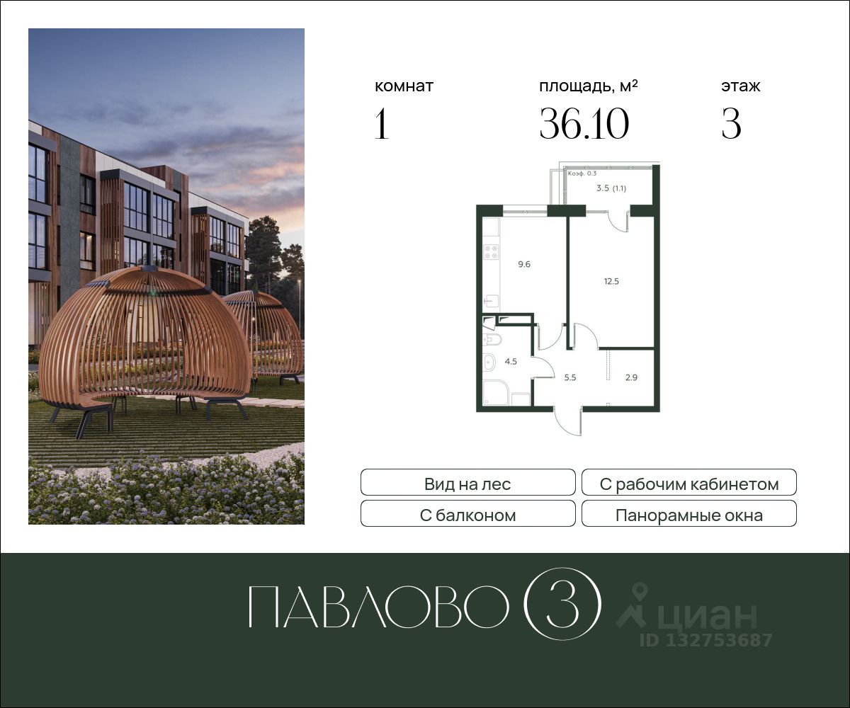 Старт продаж! Продается 1-комнатная квартира в новом клубном жилом комплексе "Павлово 3" площадью - 36.10 кв. м на 3 этаже, в корпусе 1 в малоэтажном монолитном доме от компании-застройщика.