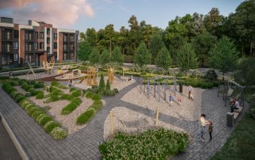 На территории клубного дома детям не придется скучать. В их распоряжении - 16 игровых площадок с инвентарем из природных безопасных материалов. А для поддержания здорового образа жизни предусмотрено 5 спортивных зон, включая воркаут-тренажеры, корты для мини-футбола, волейбола, падел-тенниса и баскетбола.