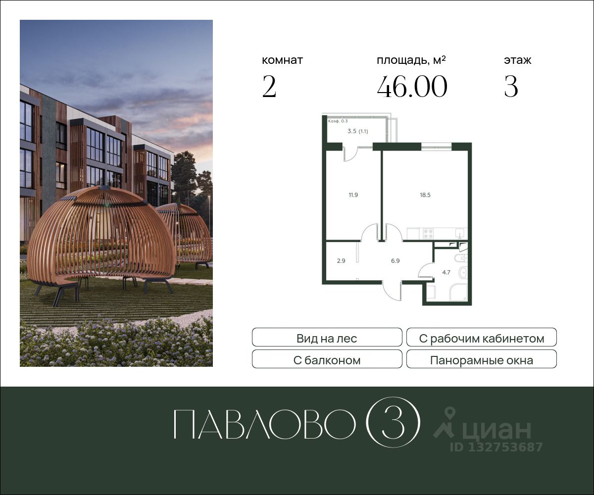 Старт продаж! Продается 2-комнатная квартира в новом клубном жилом комплексе "Павлово 3" площадью - 46.00 кв. м на 3 этаже, в корпусе 1 в малоэтажном монолитном доме от компании-застройщика.