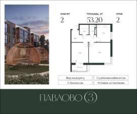 Продается 2-комнатная квартира в новом клубном жилом комплексе "Павлово 3" площадью - 53.20 кв. м, на 2 этаже, в корпусе 2 в малоэтажном монолитном доме от компании-застройщика.