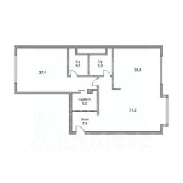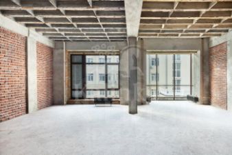 Возможная планировка: гостиная, 2 спальни, 2 ванных комнаты. Высота потолков 3,5 метра. Окна ориентированы на две стороны, во дворы. Панорамное остекление. В помещении светло.