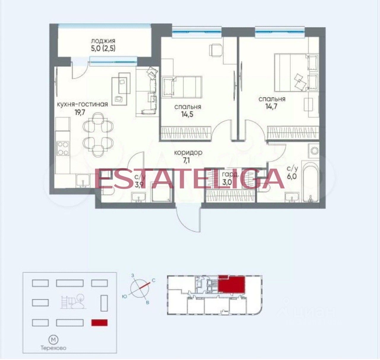 • 2 просторные спальни