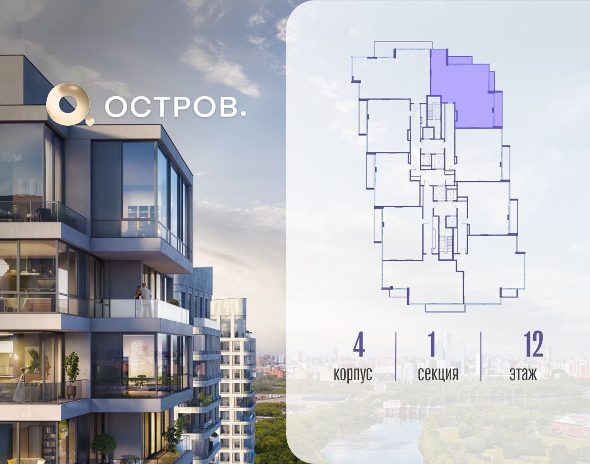 ОСТРОВ.4 - часть жилого комплекса на западе Москвы, в 15 минутах езды от центра. Это настоящий заповедник посреди большого города, в окружении реки и 650 га заповедников. Здесь все необходимое находится по соседству: от детского сада до супермаркета, от фитнес-зала до серфинг-центра. На территории созданы все условия для отдыха и общения: клубная инфраструктура в домах и дворы-парки, набережные и променады, маршруты для спортсменов, детей и возрастных жителей. В нескольких минутах ходьбы расположена станция метро "Терехово" БКЛ. На автомобиле - 10 минут до Москва-Сити и 15 минут до Садового кольца.