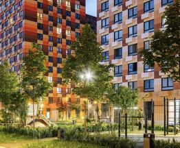 В жилой квартал входят одиннадцать корпусов, в которых есть квартиры и апартаменты. Переменная высота домов — от 11 до 24 этажей — создаёт ощущение простора и позволяет солнечному свету свободно проникать во дворы и комнаты. Фасады природных цветов украшены разными фактурными элементами, поэтому каждый дом выглядит по-особенному.