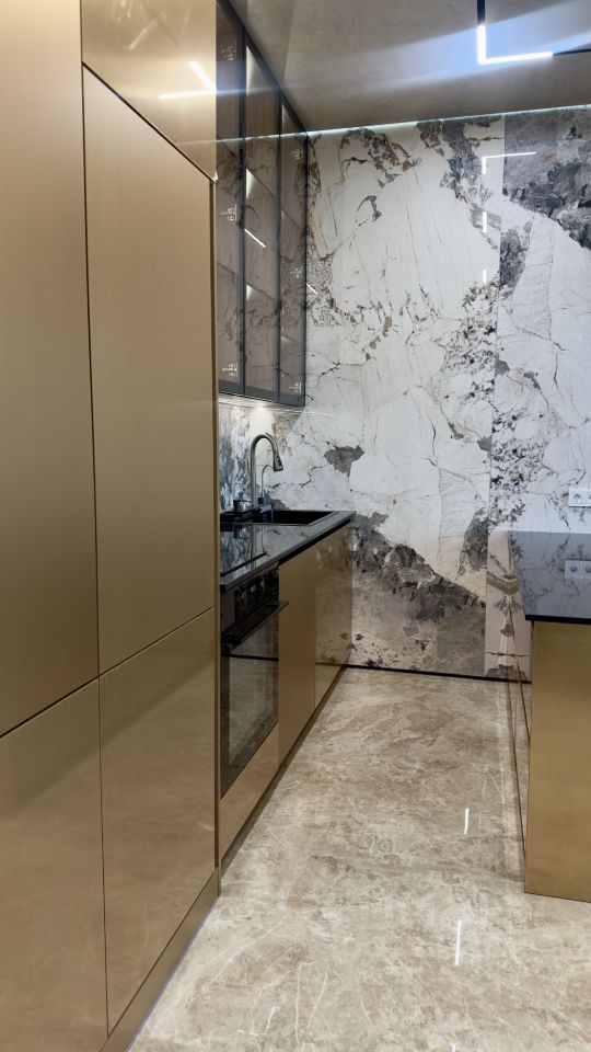 Ремонт выполнен в соответствии с дизайн проектом и последними интерьерными трендами. Качественная керамика Atlas Concord (Италия), Parcelanosa (Испания), стеновые панели Patagonia, ламинированный паркет CBM (Чехия). Сантехника Gessi. Кухня с металлическими фасадами и столешницей из из натурального камня, что сразу выдает высокий уровень и качество ремонта!