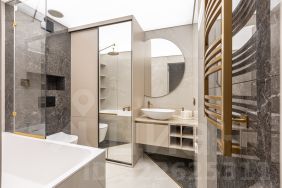 Санузел: итальянская сантехника Palazzani (Электрический полотенце-сушитель. Стиральная машина с WiFi управлением LG. Керамическая столешница DEKTON, устойчивая к царапинам, холодному/горячему воздействию. Эмалевый шкаф купе. Теплый пол с удаленным управлением. Колонка Multi-room.