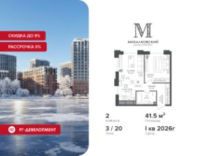 Продаётся 2-к квартира 41,5 кв.м. в ЖК "Михалковский" на 3-м этаже 20 этажного дома.