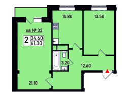 Продаётся 2-комнатная квартира в сданном доме (Дом 17 - Сиреневый), срок сдачи: IV-кв. 2020, общей площадью 61 кв.м., на 1 этаже. НОВАЯ МОСКВА! КЛЮЧИ В ДЕНЬ СДЕЛКИ!