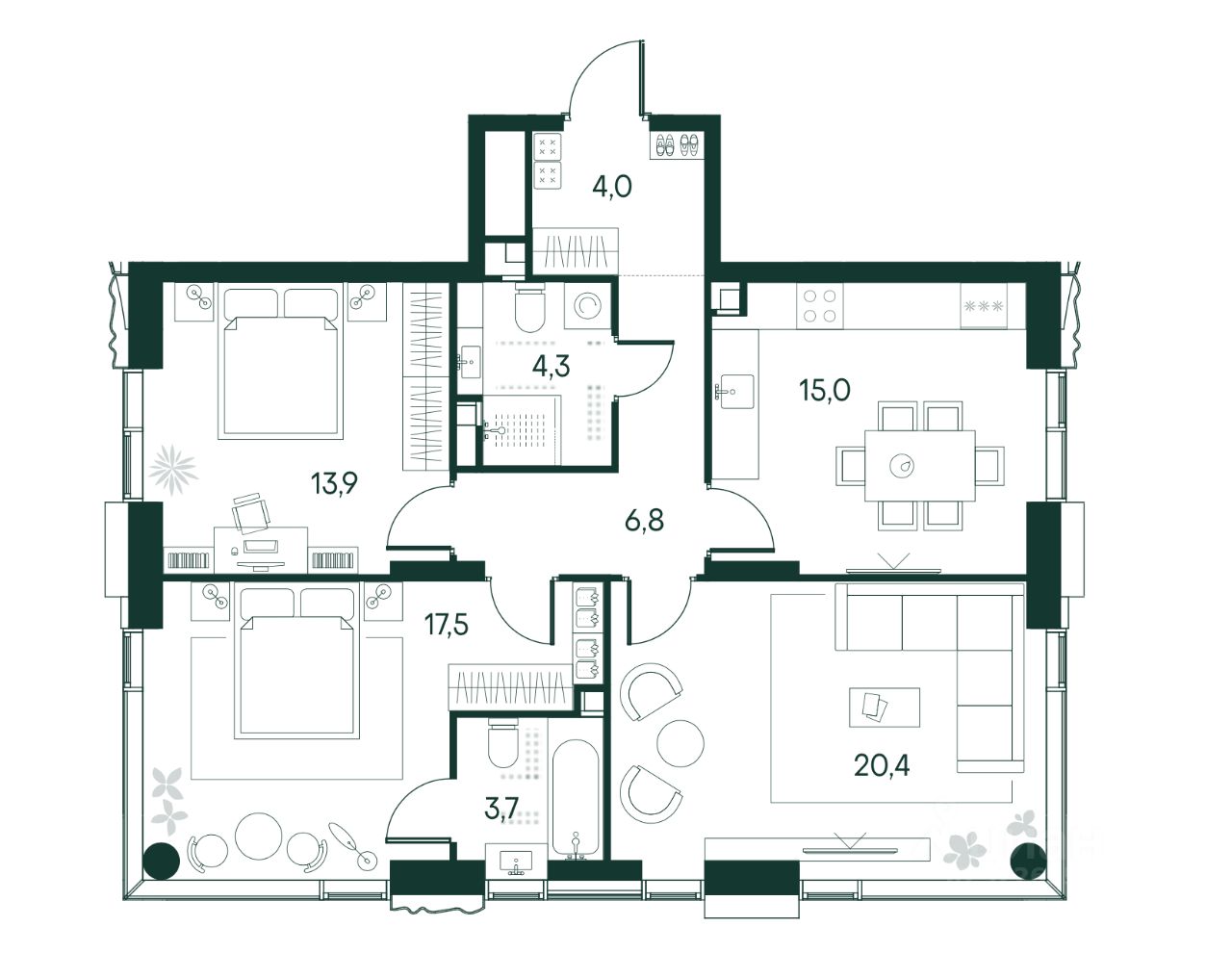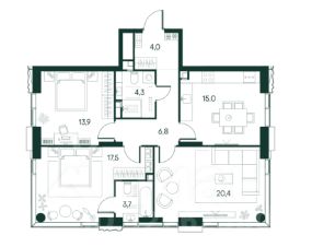 Просторная трёхкомнатная квартира площадью 86 кв.м., наполненная светом благодаря окнам, выходящим сразу на три стороны света. Таких квартир на весь ЖК всего 42 штуки