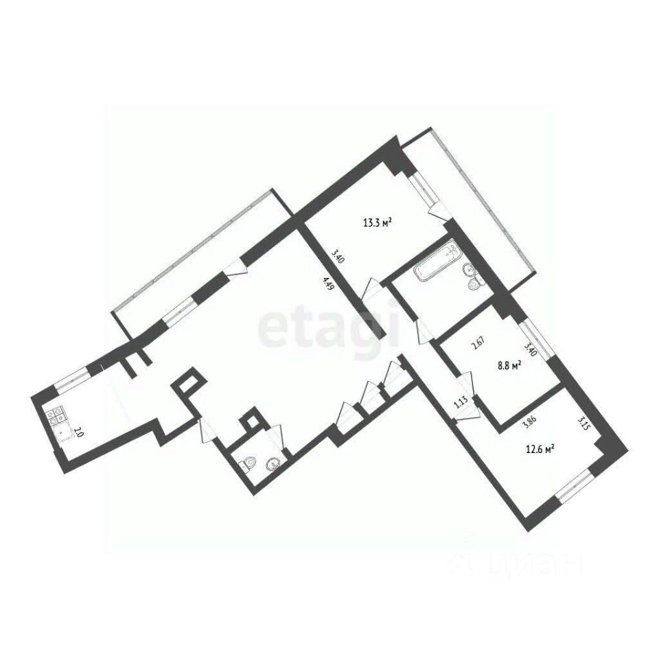 Просторная евро-4-комнатная квартира площадью 89 м² расположена на 4 этаже 25-этажного дома.