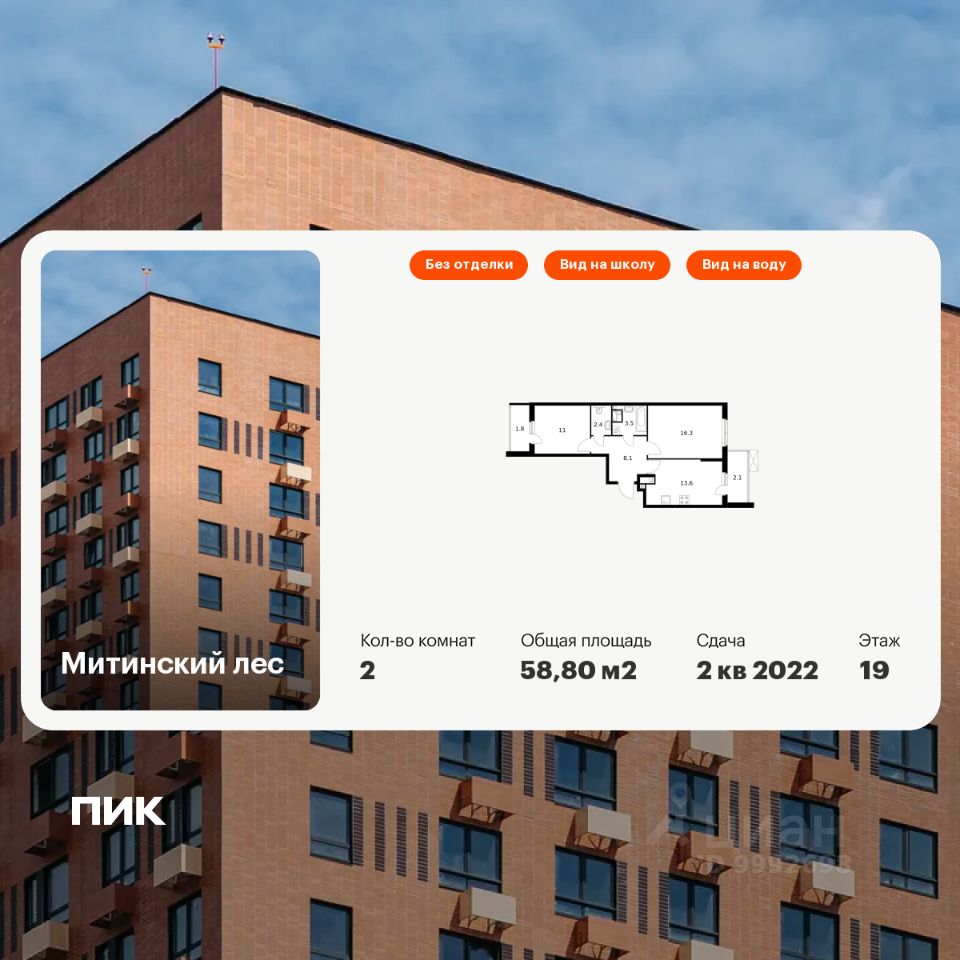 Продаётся 2-комн. квартира площадью 58,8 кв.м на 19 этаже 25 этажного дома (Корпус 15, Секция 6) проекта ПИК Митинский лес. Светлый просторный подъезд на уровне земли, функциональная планировка, большие окна, без отделки.