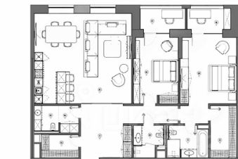 — Просторная планировка: кухня-столовая-гостиная, мастер-спальня с гардеробной и ванной, гостевая спальня, 2 санузла, постирочная, холл, две лоджии.