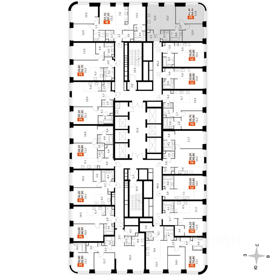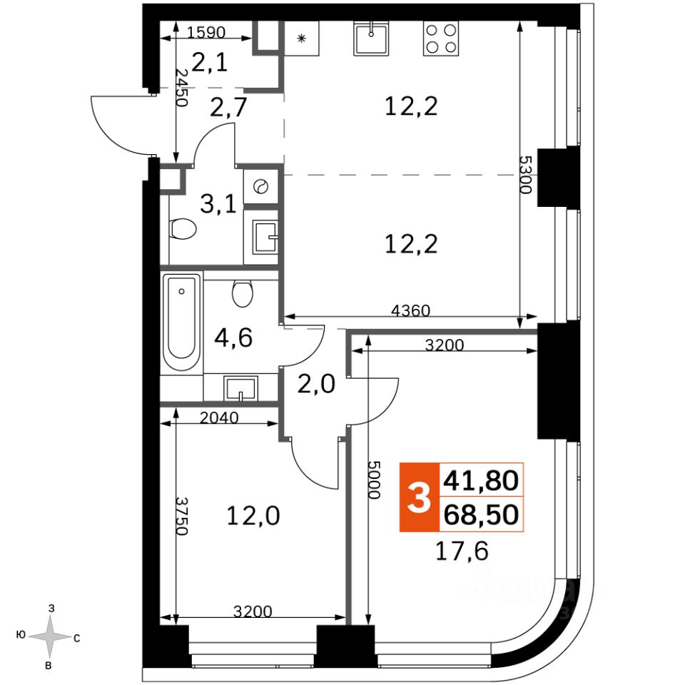 • Площадь 68,5 м²