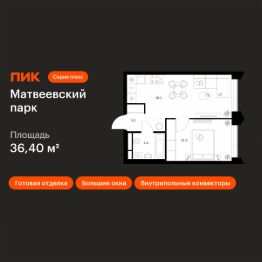 Продаётся 1-комн. квартира площадью 36,4 кв.м на 19 этаже 25 этажного дома (Корпус 4.6, Секция 4) проекта ПИК Матвеевский парк. Светлый просторный подъезд на уровне земли, функциональная планировка, большие окна, c отделкой.