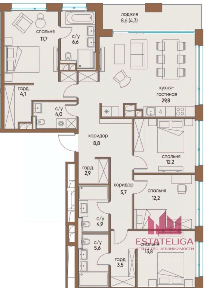 Id 57165. РОСКОШНАЯ 4-х КОМНАТНАЯ!