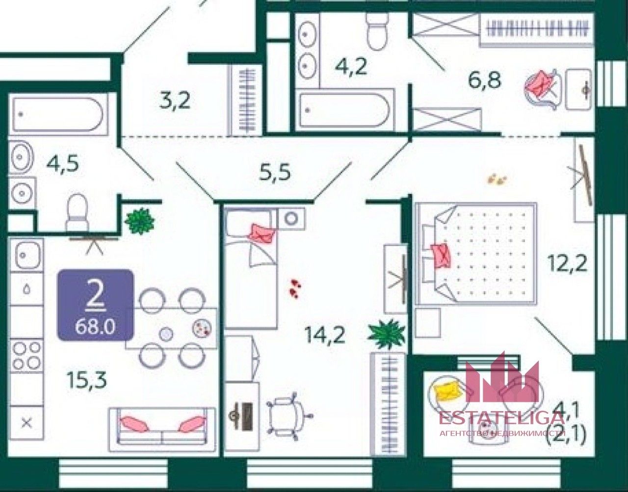 Идеальная Планировка: Насладитесь продуманным пространством, где каждый из 68 м² использован с максимальной эффективностью. Просторная гостиная станет идеальным местом для семейных вечеров и приема гостей, уютная спальня подарит безмятежный отдых, а функциональная кухня вдохновит на кулинарные шедевры. Здесь найдется место для всего, что вам дорого.