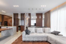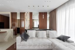 Высокие потолки, панорамные окна, система умный дом, разные уровни освещения создают максимальный уют.