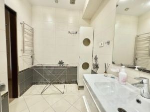 Квартира после перепланировки. Проведены электрические теплые полы по всему периметру квартиры, кроме двух спален. Установлена электрическая плита. Заменены все коммуникации. В коридоре располагается вместительная кладовая-гардеробная. Новая просторная ванная и раздельный санузел. Две изолированные спальни, просторная кухня-гостиная. Два кондиционера. Установлены 2-х камерные стеклопакеты в ПВХ рамах. Высота потолков 3 м². Квартира идеально подходит для семейного проживания.