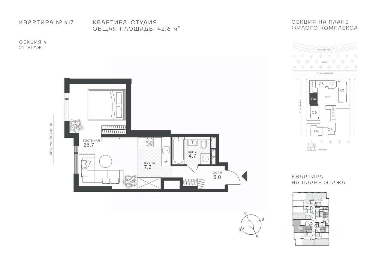 Успейте стать частью уникального проекта премиум-класса на западе Москвы! В продаже квартиры: 1-комнатные от 28,1 м²; 2-комнатные от 61,2 м²; 3-комнатные от 86,6 м²; 4-комнатные от 110,7 м². Первый взнос от 30%! Рассрочка на 2 года без переплат! Крылатское 33 это премиальный жилой комплекс от специализированного застройщика ООО "Сияние". Самый высокий небоскрёб в районе, достигающий отметки в 150 метров и малоэтажный клубный формат высотой от 42 метров на приватной территории площадью 1,4 га. Великолепные виды на излучину Москва-реки, Живописный мост и урбанистический облик города. Эксклюзивные форматы квартир с панорамным остеклением и патио-террасами. Двухуровневый паркинг на 271м/м, премиальные входные группы, ресторан высокой кухни, детский сад и эко-маркет на территории комплекса. Эксклюзивные преимущества: доступ к wellness-центру, коворкингу и клубной гостиной только для резидентов. Над проектом работали именитые российские архитектурные бюро: архитектор проекта бюро "Остоженка", планировочные решения от бюро Александры Федоровой. Расположение Пешком: 5-7 минут - до парка Звезд, Крылатского парка и набережной Москвы-реки; 15 минут - до метро Крылатское Арбатско-Покровской линии; 15 минут - до пристани Крылатская. На автомобиле: 10 минут - до Третьего транспортного кольца; 15 минут - до Садового кольца и Москва- Сити; 20-30 минут - до Аэропорта Внуково; 30-40 минут - до Аэропорта Шереметьево. В 300 метрах от комплекса - удобная транспортная развязка с проспектом Маршала Жукова, обеспечивающая легкий доступ к ключевым магистралям. Благоустройство: Просторная общественная гостиная; Коворкинг с кофе-баром, комфортные переговорные зоны с быстрым wi-fi, зарядными устройствами и библиотекой; Пространство friends lab для организации клубных мероприятий; Wellness-центр с фитнес-залом и массажными кабинетами; Ресторан высокой кухни; Частный детский сад; Детское кафе; Современный детский playhub; Спортивные площадки; Гипоаллергенный сад, безопасные водные пространства, декоративные пруды и сухие фонтаны; Высокоскоростные бесшумные лифты; Разделение зон для резидентов квартала и сервисного обслуживания. Окружение: - парки: Крылатские холмы, природно-исторический парк Москворецкий, Серебряный Бор; - учебные заведения: 5 образовательных комплексов, в которые входят 15 детских садов и 12 школьных корпусов. В удобной транспортной доступности гимназия им. Е. М. Примакова и международный лицей The International School of Moscow; - уникальные спортивные сооружения: гребной канал "Крылатское", легендарный велотрек "Крылатское", "Лата Трэк" для горнолыжников и сноубордистов, ледовый дворец "Крылатское"; - единственный в Москве парк развлечений под открытым небом, включающий более 70 вариантов досуга для любого возраста и времени года. Срок сдачи проекта: 2 квартал 2027 года. Финансирование и эскроу-счет обеспечены банком МКБ.