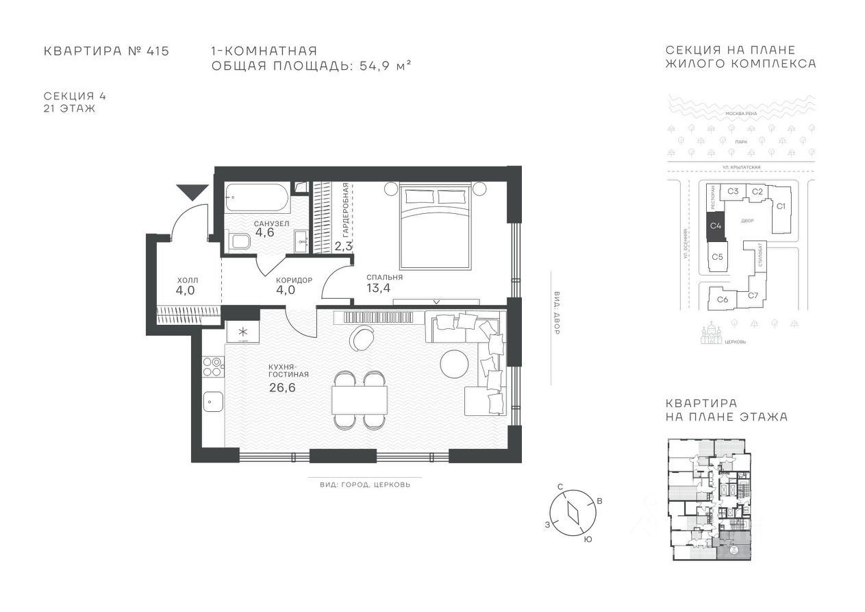 Успейте стать частью уникального проекта премиум-класса на западе Москвы! В продаже квартиры: 1-комнатные от 28,1 м²; 2-комнатные от 61,2 м²; 3-комнатные от 86,6 м²; 4-комнатные от 110,7 м². Первый взнос от 30%! Рассрочка на 2 года без переплат! Крылатское 33 это премиальный жилой комплекс от специализированного застройщика ООО "Сияние". Самый высокий небоскрёб в районе, достигающий отметки в 150 метров и малоэтажный клубный формат высотой от 42 метров на приватной территории площадью 1,4 га. Великолепные виды на излучину Москва-реки, Живописный мост и урбанистический облик города. Эксклюзивные форматы квартир с панорамным остеклением и патио-террасами. Двухуровневый паркинг на 271м/м, премиальные входные группы, ресторан высокой кухни, детский сад и эко-маркет на территории комплекса. Эксклюзивные преимущества: доступ к wellness-центру, коворкингу и клубной гостиной только для резидентов. Над проектом работали именитые российские архитектурные бюро: архитектор проекта бюро "Остоженка", планировочные решения от бюро Александры Федоровой. Расположение Пешком: 5-7 минут - до парка Звезд, Крылатского парка и набережной Москвы-реки; 15 минут - до метро Крылатское Арбатско-Покровской линии; 15 минут - до пристани Крылатская. На автомобиле: 10 минут - до Третьего транспортного кольца; 15 минут - до Садового кольца и Москва- Сити; 20-30 минут - до Аэропорта Внуково; 30-40 минут - до Аэропорта Шереметьево. В 300 метрах от комплекса - удобная транспортная развязка с проспектом Маршала Жукова, обеспечивающая легкий доступ к ключевым магистралям. Благоустройство: Просторная общественная гостиная; Коворкинг с кофе-баром, комфортные переговорные зоны с быстрым wi-fi, зарядными устройствами и библиотекой; Пространство friends lab для организации клубных мероприятий; Wellness-центр с фитнес-залом и массажными кабинетами; Ресторан высокой кухни; Частный детский сад; Детское кафе; Современный детский playhub; Спортивные площадки; Гипоаллергенный сад, безопасные водные пространства, декоративные пруды и сухие фонтаны; Высокоскоростные бесшумные лифты; Разделение зон для резидентов квартала и сервисного обслуживания. Окружение: - парки: Крылатские холмы, природно-исторический парк Москворецкий, Серебряный Бор; - учебные заведения: 5 образовательных комплексов, в которые входят 15 детских садов и 12 школьных корпусов. В удобной транспортной доступности гимназия им. Е. М. Примакова и международный лицей The International School of Moscow; - уникальные спортивные сооружения: гребной канал "Крылатское", легендарный велотрек "Крылатское", "Лата Трэк" для горнолыжников и сноубордистов, ледовый дворец "Крылатское"; - единственный в Москве парк развлечений под открытым небом, включающий более 70 вариантов досуга для любого возраста и времени года. Срок сдачи проекта: 2 квартал 2027 года. Финансирование и эскроу-счет обеспечены банком МКБ.