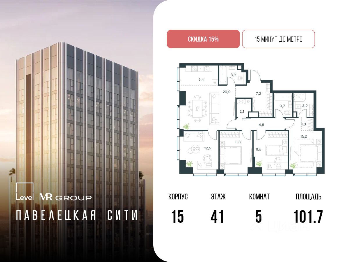 - 15 мин. пешком до метро "Павелецкая";
