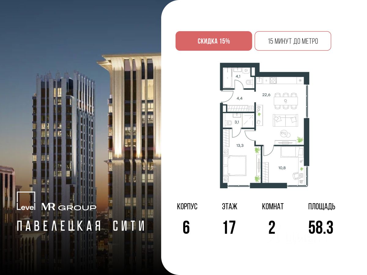 В Даниловском районе столицы (ЮАО) продаётся 2-комнатная квартира площадью 58.30 кв.м без отделки. Квартира расположена на 17 этаже -этажного корпуса 'Горизонт' в жилом комплексе бизнес-класса Павелецкая Сити. Высота потолков 3.00м.