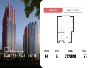 В Даниловском районе столицы (ЮАО) продаётся студия площадью 27.00 кв.м без отделки. Квартира расположена на 6 этаже -этажного корпуса 'Горизонт' в жилом комплексе бизнес-класса Павелецкая Сити. Высота потолков 3.00м.