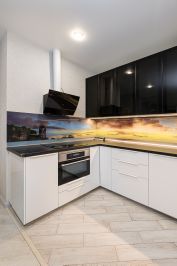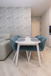 • уютная кухня-гостиная с выделенной зоной готовки;
