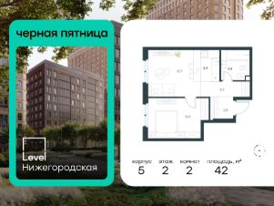 В активно развивающемся районе на юго-востоке столицы продается 2-комнатная квартира площадью 42 кв.м с отделкой "white box".. Квартира расположена на 2 этаже 29-этажного этажного корпуса Корпус 5 в жилом комплексе комфорт-класса Level Нижегородская (компания Level Group/Левел групп).