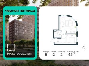 В активно развивающемся районе на юго-востоке столицы продается 2-комнатная квартира площадью 45,4 кв.м с отделкой "white box".. Квартира расположена на 2 этаже 29-этажного этажного корпуса Корпус 5 в жилом комплексе комфорт-класса Level Нижегородская (компания Level Group/Левел групп).