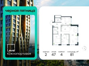 В северной части района Печатники продается 4-комнатная квартира площадью 81.00 кв.м без отделки. Квартира расположена на 47 этаже 47-этажного корпуса Корпус 2 в жилом комплексе комфорт-класса Level Южнопортовая (компания Level Group/Левел групп).