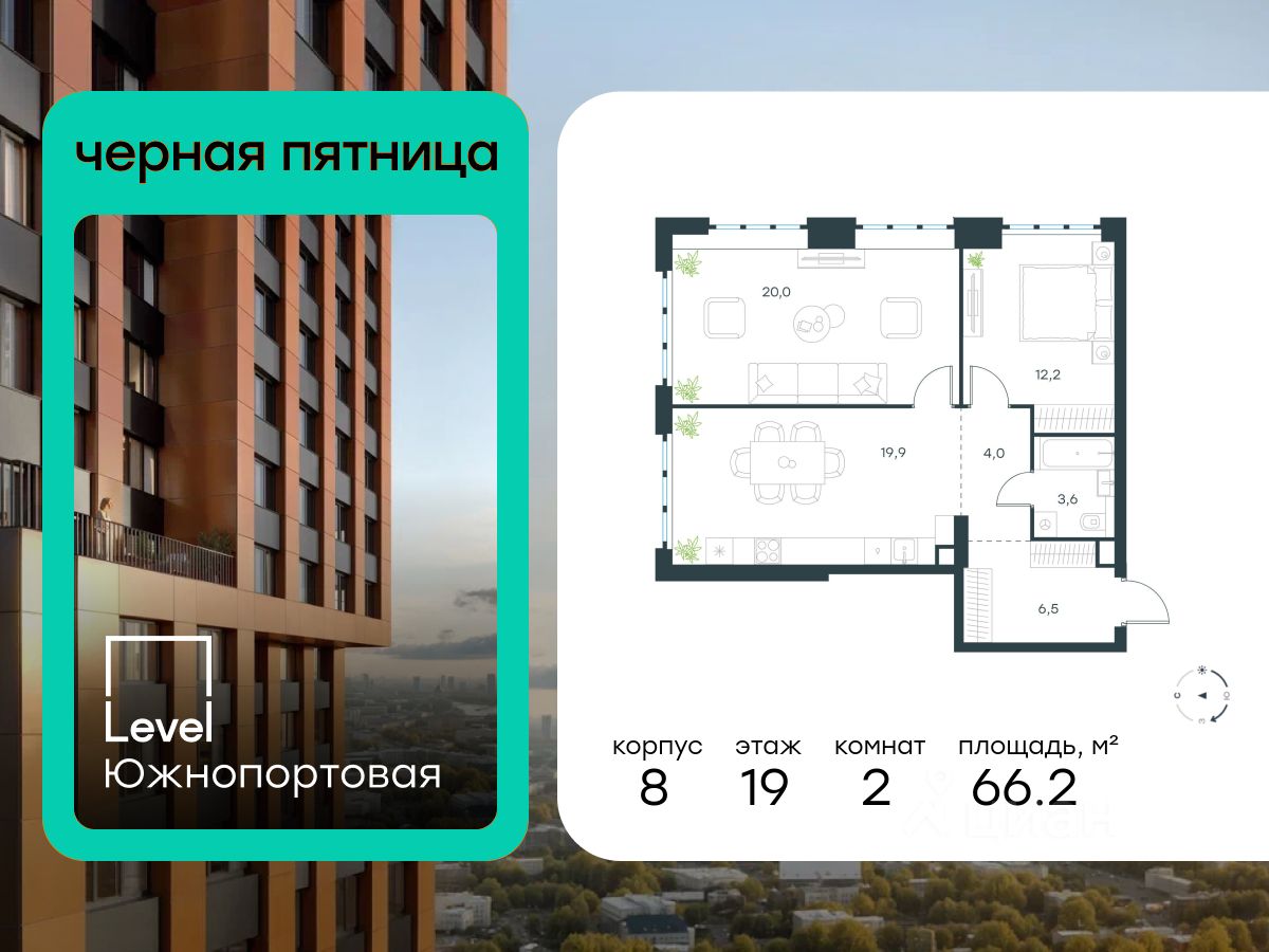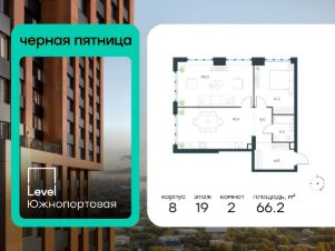 В северной части района Печатники продается 2-комнатная квартира площадью 66.20 кв.м без отделки. Квартира расположена на 19 этаже 49-этажного корпуса Корпус 8 в жилом комплексе комфорт-класса Level Южнопортовая (компания Level Group/Левел групп).