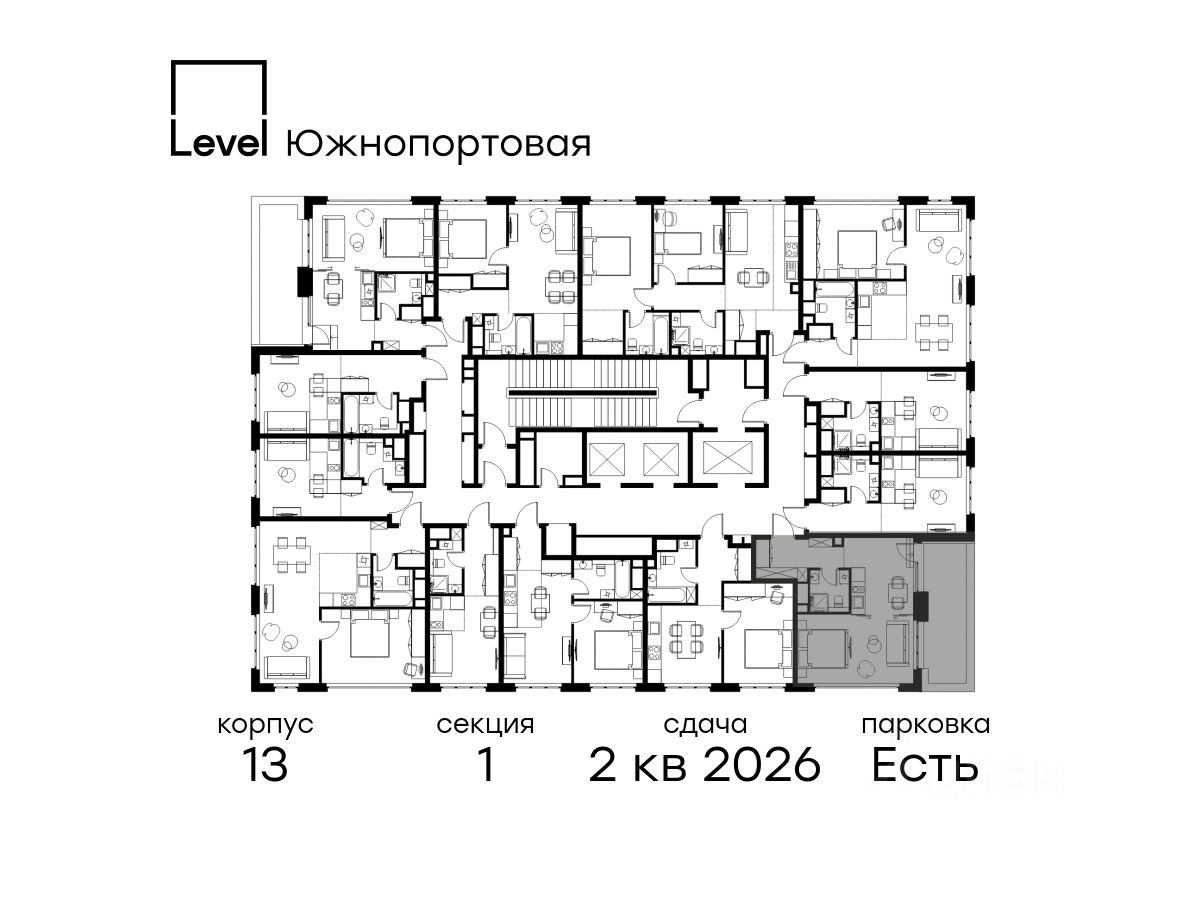 В северной части района Печатники продается 1-комнатный апартамент площадью 36.50 кв.м без отделки. Апартаменты расположены на 14 этаже 23-этажного корпуса Корпус 13 в жилом комплексе комфорт-класса Level Южнопортовая (компания Level Group/Левел групп).