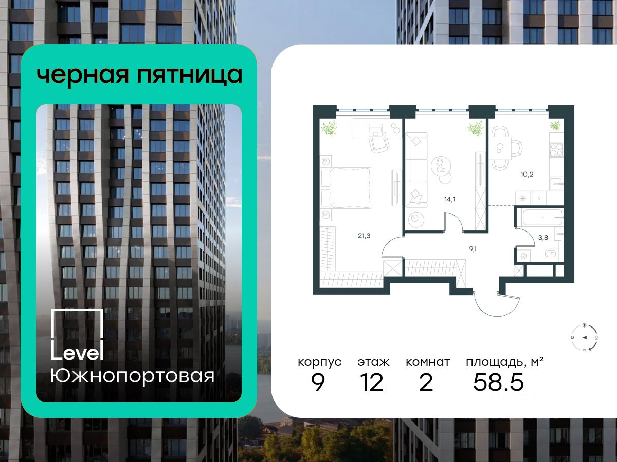В северной части района Печатники продается 2-комнатная квартира площадью 58.50 кв.м с отделкой white box. Квартира расположена на 12 этаже 49-этажного корпуса Корпус 9 в жилом комплексе комфорт-класса Level Южнопортовая (компания Level Group/Левел групп).