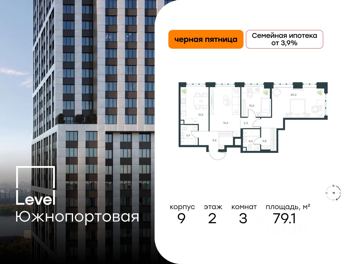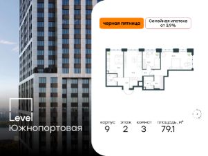 В северной части района Печатники продается 3-комнатная квартира площадью 79.10 кв.м с отделкой white box. Квартира расположена на 2 этаже 49-этажного корпуса Корпус 9 в жилом комплексе комфорт-класса Level Южнопортовая (компания Level Group/Левел групп).