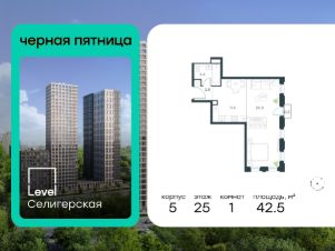 В жилом квартале, расположенном в южной части района Западное Дегунино, продаётся 1-комнатная квартира площадью 42.50 кв.м без отделки. Квартира расположена на 25 этаже 40-этажного корпуса Корпус 5 в жилом комплексе комфорт-класса Level Селигерская (компания Level Group/Левел групп).