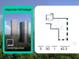 В жилом квартале, расположенном в южной части района Западное Дегунино, продаётся 1-комнатная квартира площадью 42.30 кв.м без отделки. Квартира расположена на 30 этаже 40-этажного корпуса Корпус 5 в жилом комплексе комфорт-класса Level Селигерская (компания Level Group/Левел групп).