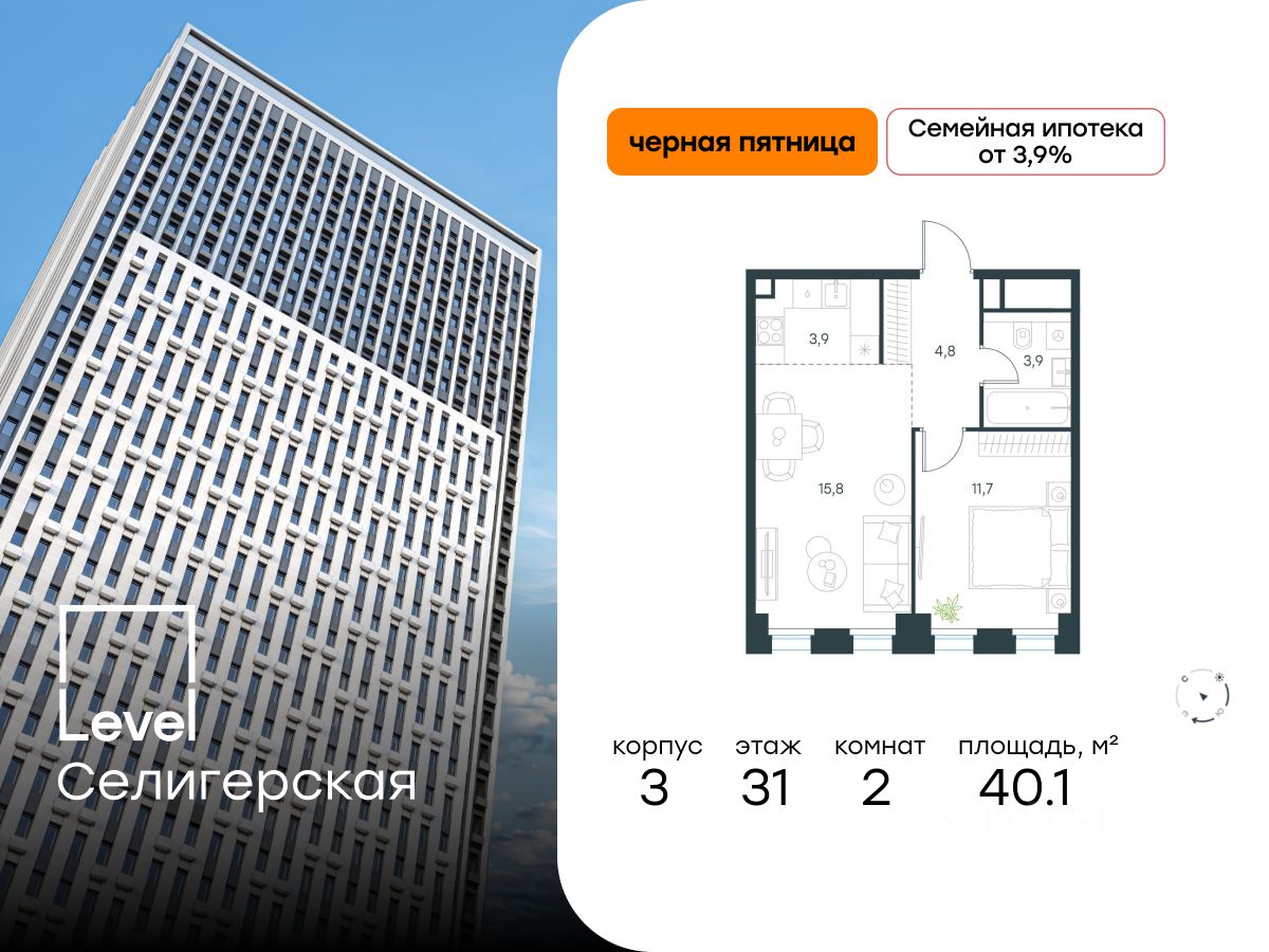 В жилом квартале, расположенном в южной части района Западное Дегунино, продаётся 2-комнатная квартира площадью 40.10 кв.м без отделки. Квартира расположена на 31 этаже 40-этажного корпуса Корпус 3 в жилом комплексе комфорт-класса Level Селигерская (компания Level Group/Левел групп).