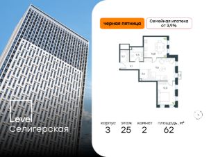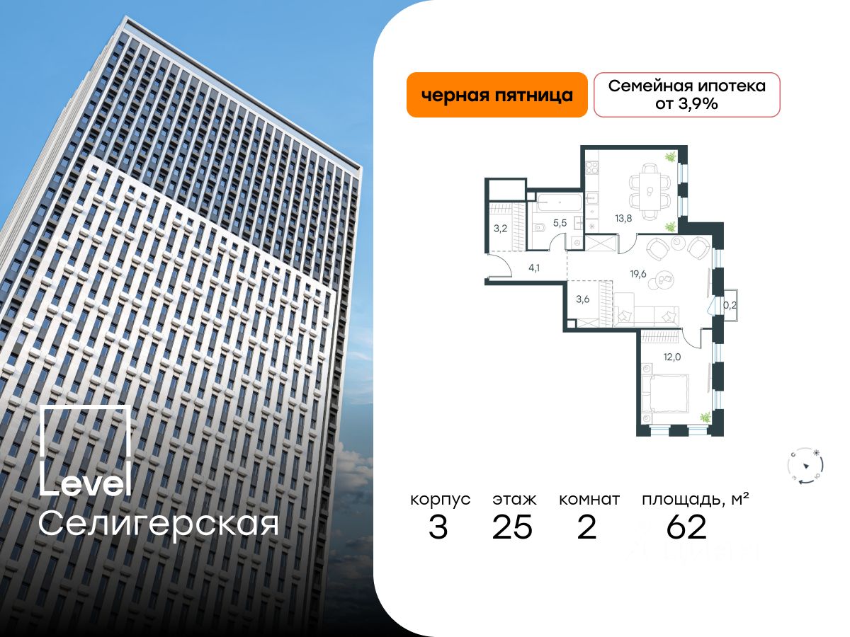 В жилом квартале, расположенном в южной части района Западное Дегунино, продаётся 2-комнатная квартира площадью 62.00 кв.м без отделки. Квартира расположена на 25 этаже 40-этажного корпуса Корпус 3 в жилом комплексе комфорт-класса Level Селигерская (компания Level Group/Левел групп).