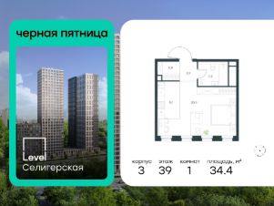 В жилом квартале, расположенном в южной части района Западное Дегунино, продаётся 1-комнатная квартира площадью 34.40 кв.м без отделки. Квартира расположена на 39 этаже 40-этажного корпуса Корпус 3 в жилом комплексе комфорт-класса Level Селигерская (компания Level Group/Левел групп).