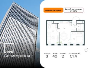 В жилом квартале, расположенном в южной части района Западное Дегунино, продаётся 2-комнатная квартира площадью 51.40 кв.м без отделки. Квартира расположена на 40 этаже 40-этажного корпуса Корпус 3 в жилом комплексе комфорт-класса Level Селигерская (компания Level Group/Левел групп).